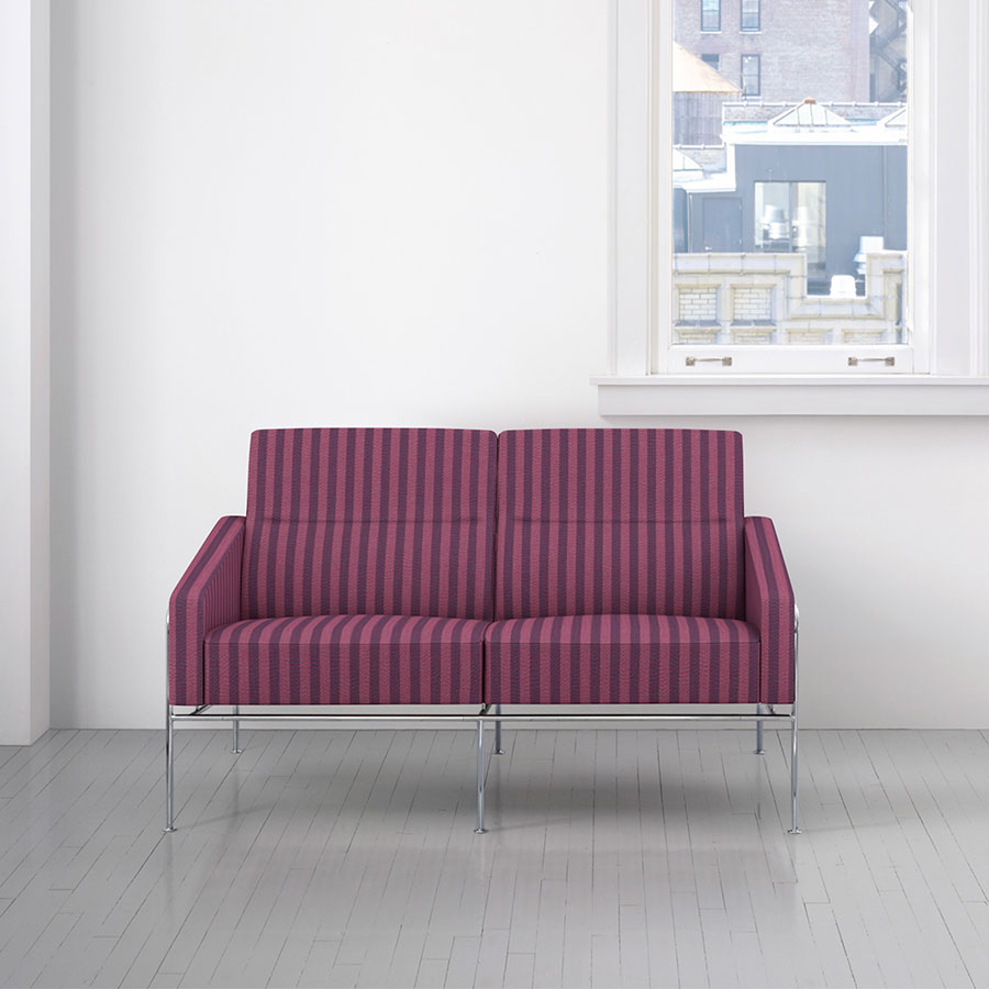 Drawing upon utilitarian design principles including the Shaker traditions of material simplicity and decoration derived from construction, woven upholstery Twist enlists a yarn-twisting technique to form a randomized moiré pattern that vibrates with visual energy.